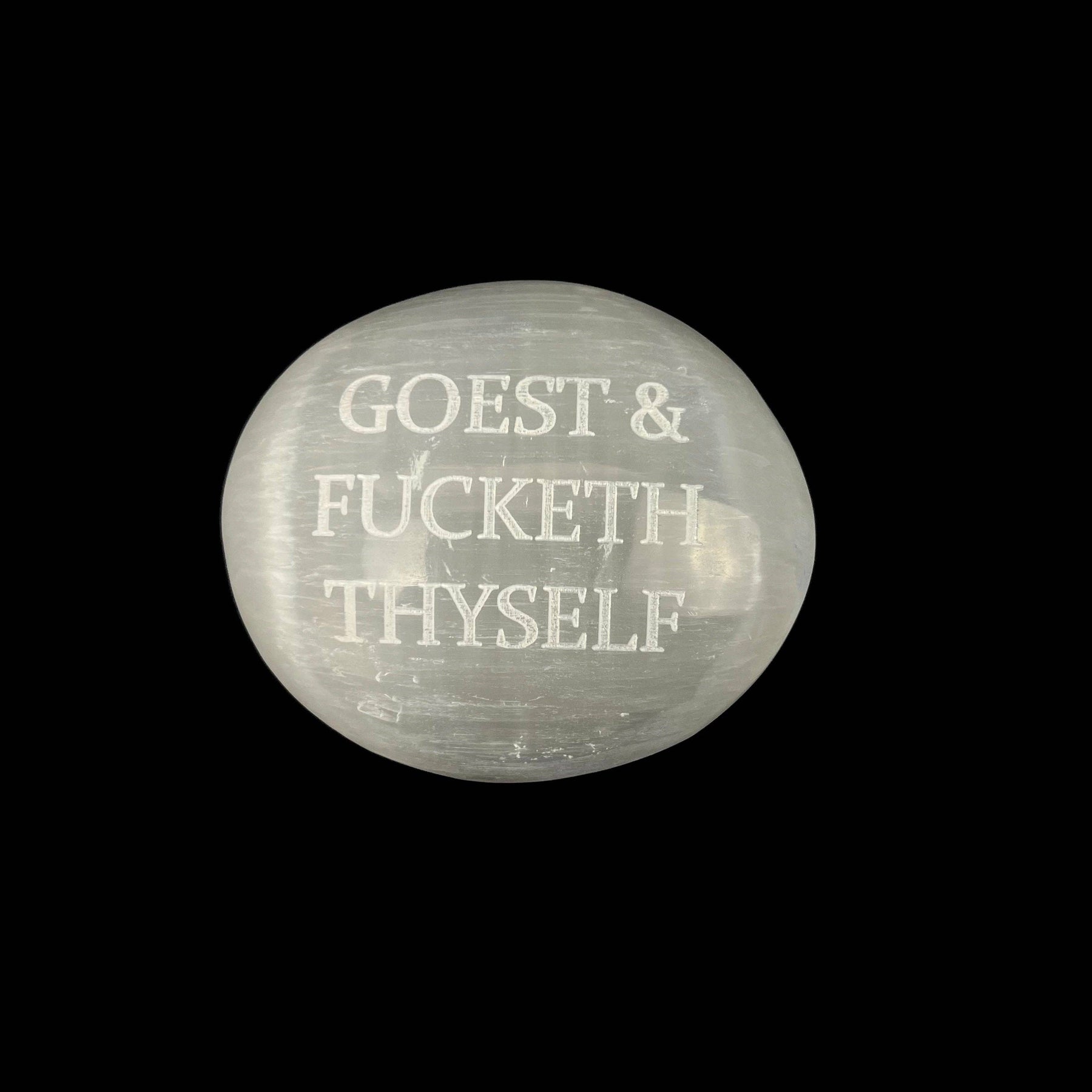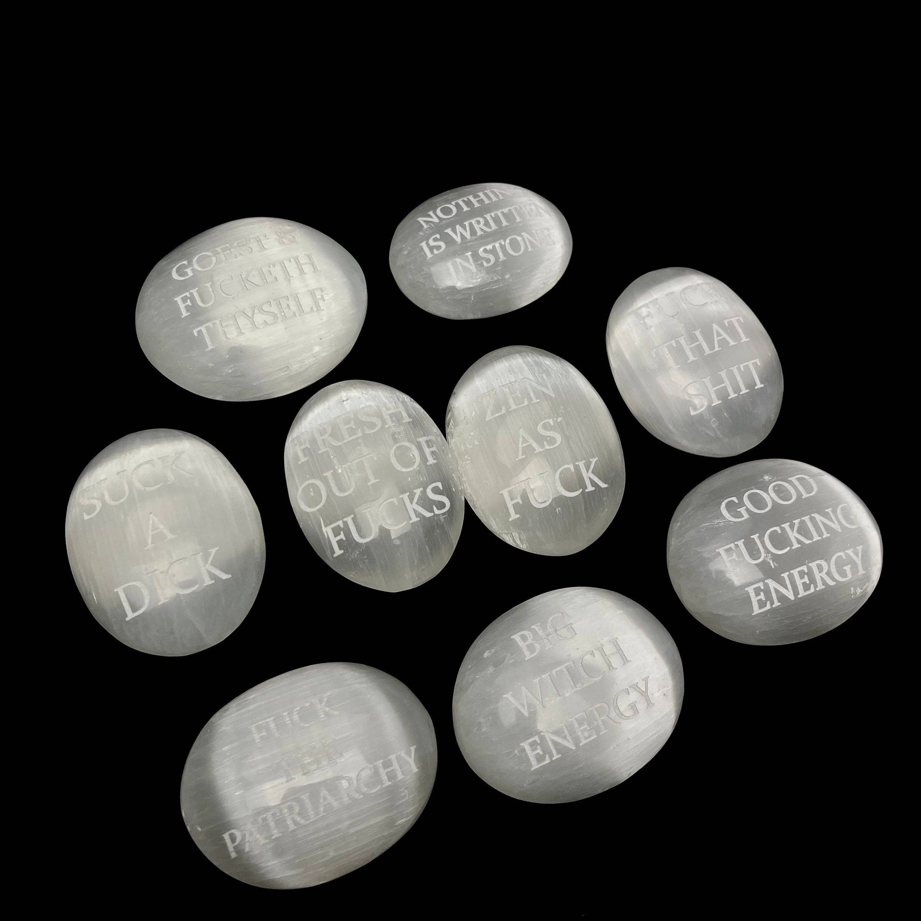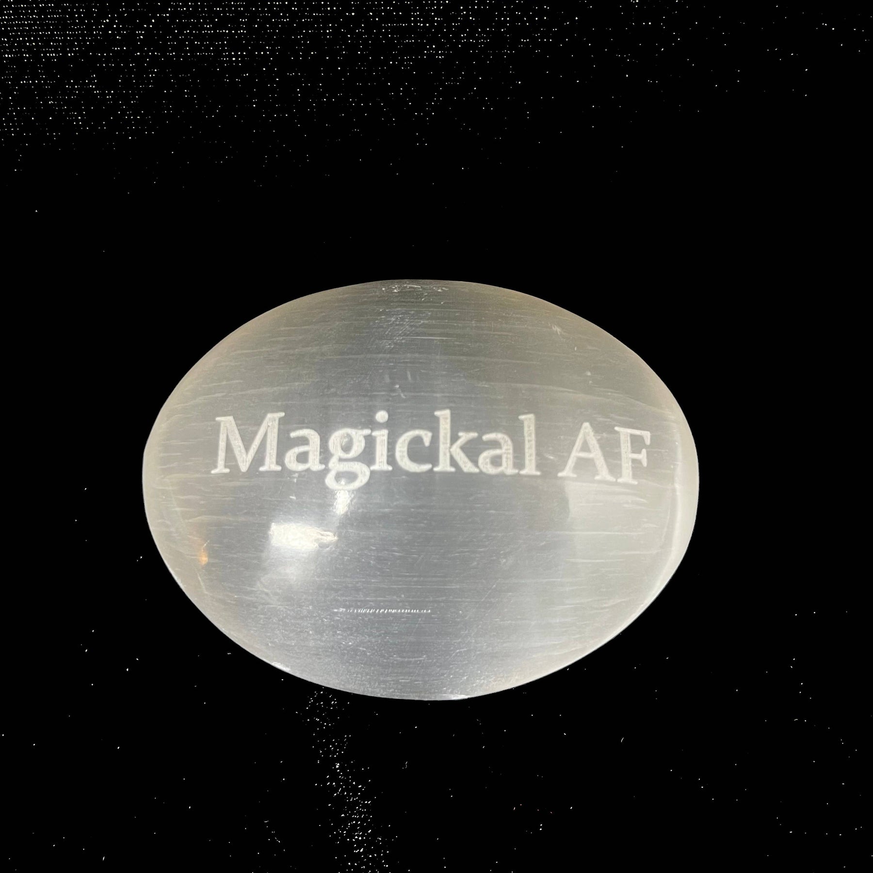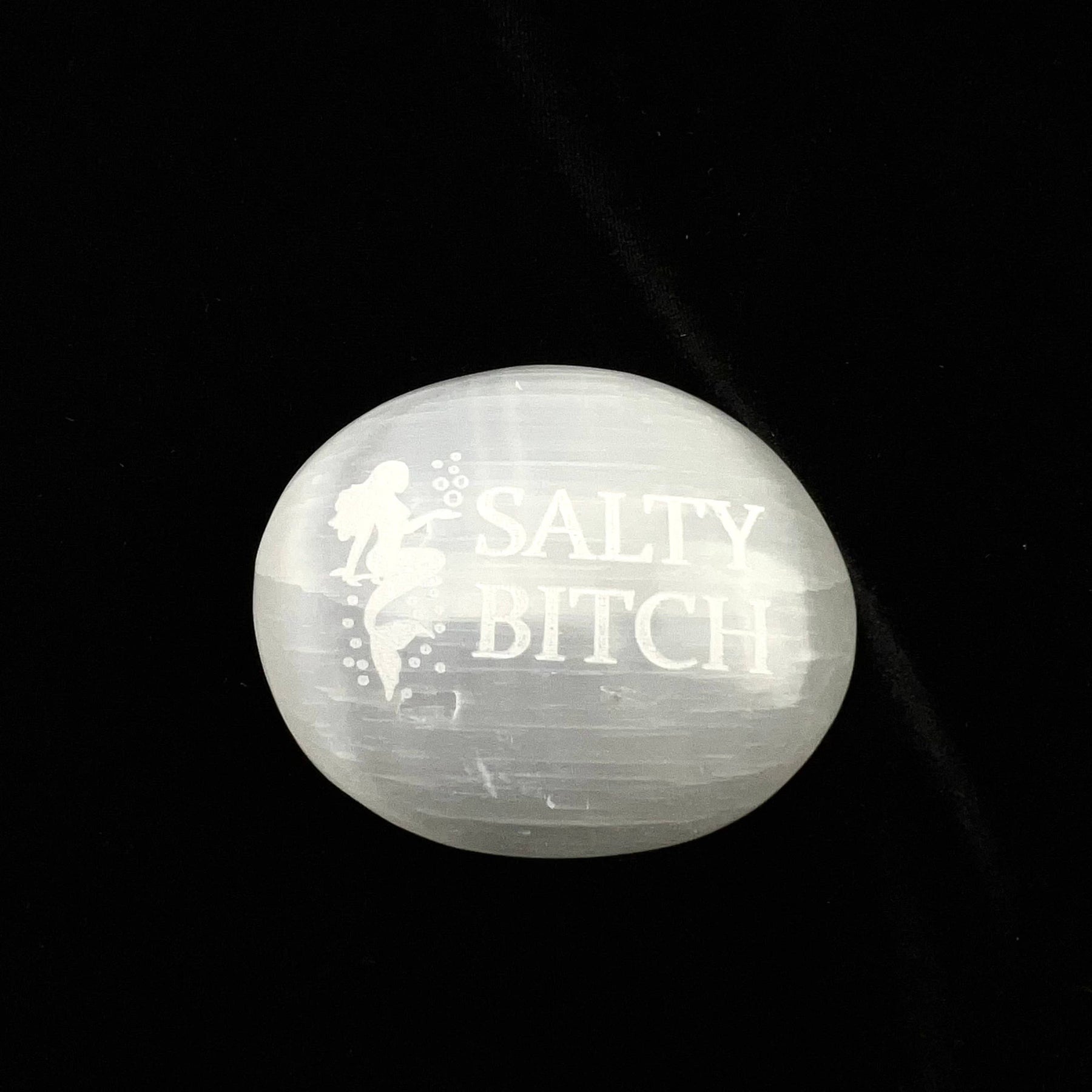 Humorous Selenite Palm Stones | Singles | (6-7cm): "Big Witch Energy" Regular