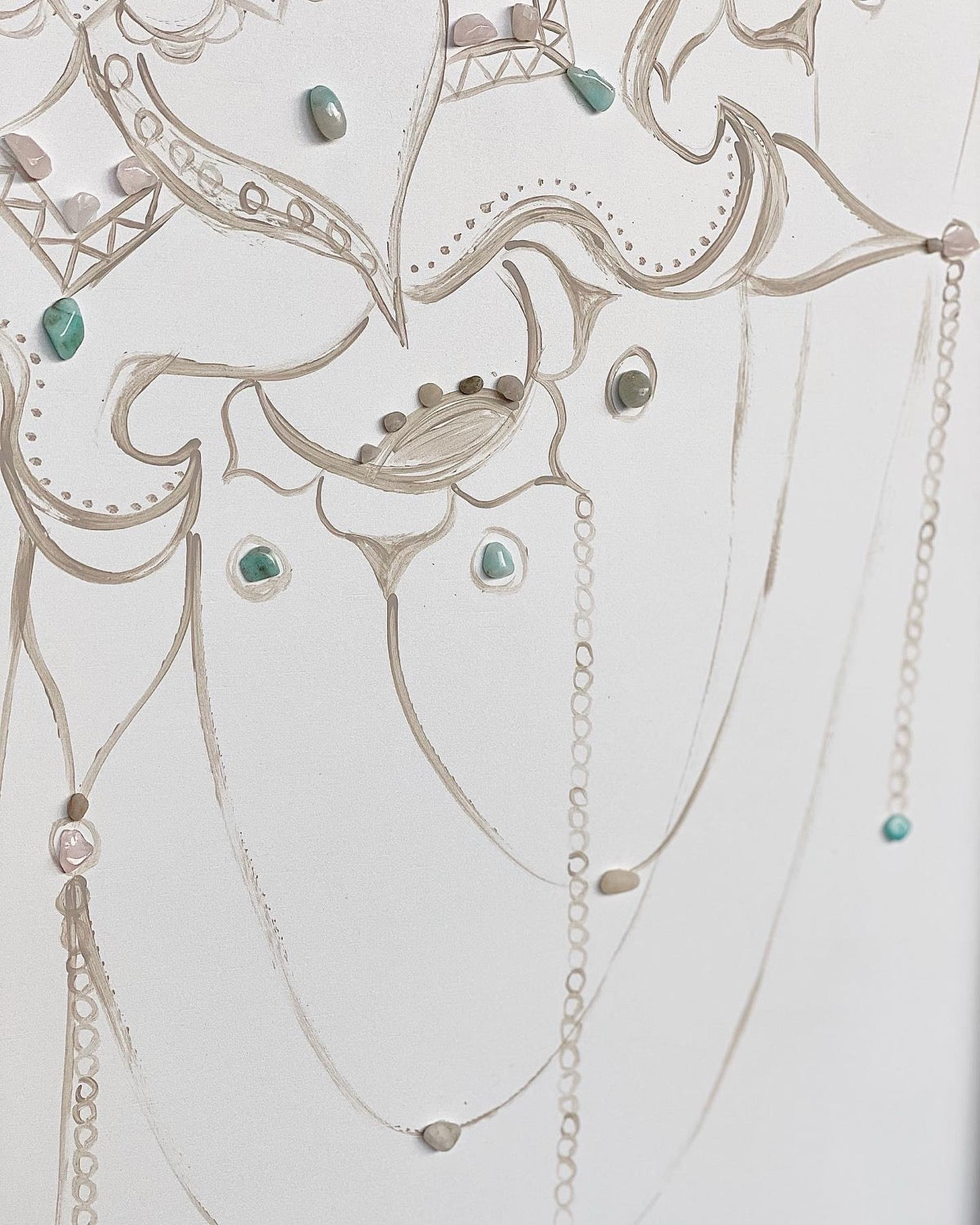 Every detail was placed with intention, allowing the piece to evolve organically into a soothing expression of unity, healing, and peace.