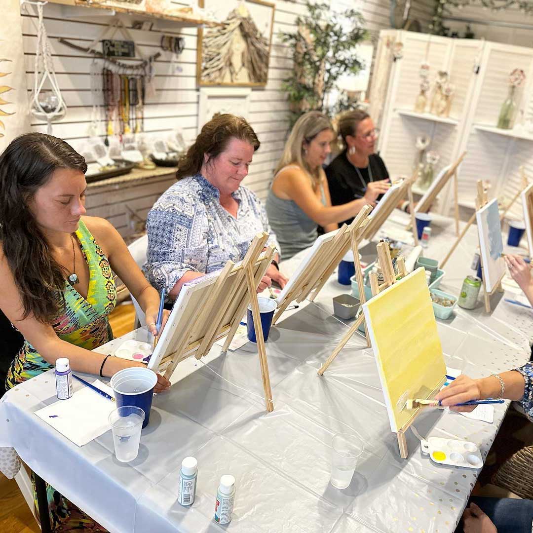 Workshops are beginner-friendly and all materials are included unless otherwise noted. You’ll be guided every step of the way, whether painting, assembling, or meditating.